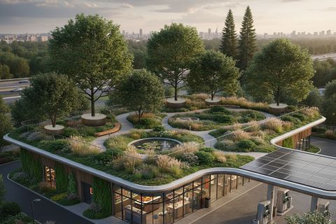 Beispielhafte, nachhaltige Begrünungen von Bauwerken, Dächern, Städten und versiegelten Flächen