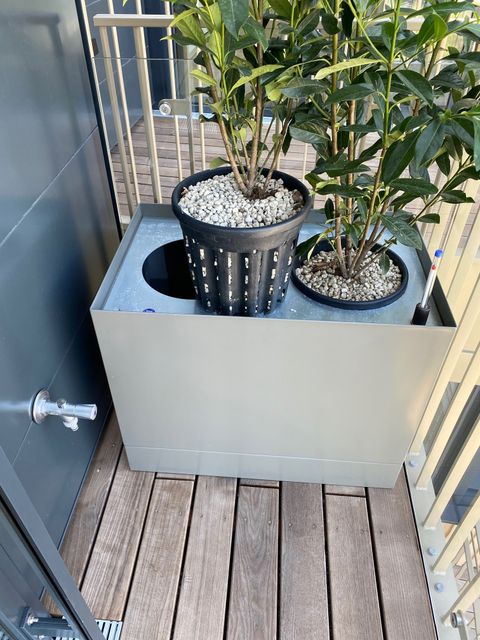 Intensive Begrünung von Wohnbalkonen mit maßgefertigten Edelstahl-Pflanzgefäßen und Hydro Profi Line® Systemen. Integrierte Aufbewahrungsboxen aus Edelstahl und automatische Wasserversorgung ermöglichen eine pflegeleichte, nachhaltige und optisch hochwertige Balkongestaltung.