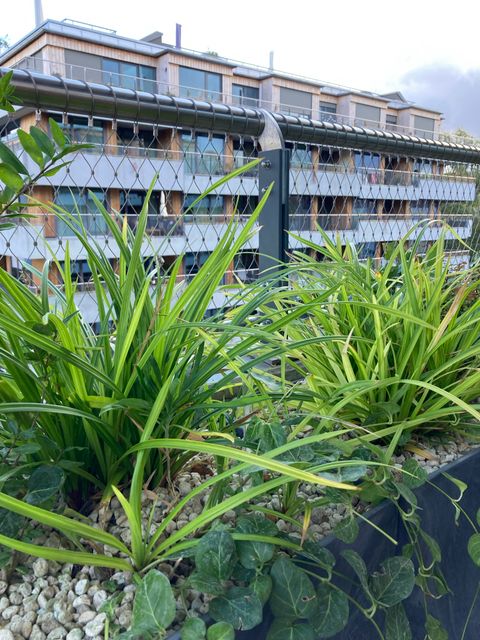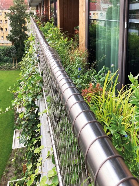 - Intensive Begrünung von Balkonen im Wohnungsbau (über ca. 2.500 Meter) mit kosteneffizienten Gefäßen